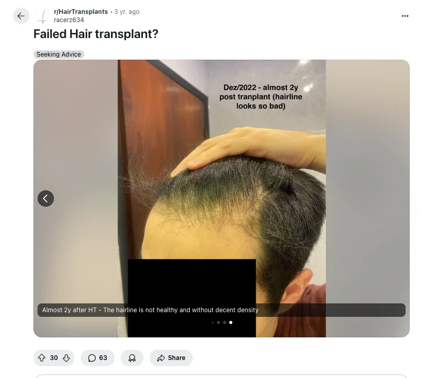 ❌ Achter hun getransplanteerde haar? Kaal.