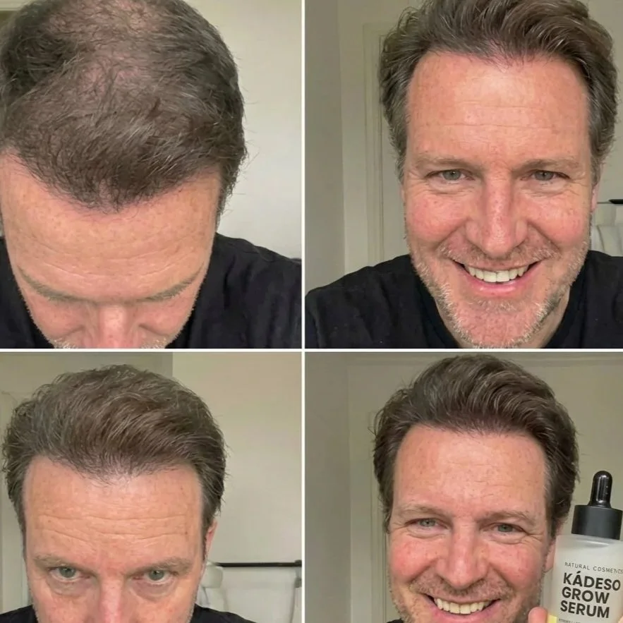 De KÁDESO Grow Kit™ gebruikt natuurlijke plantenstamcellen en DHT-blokkers om haaruitval te stoppen en slapende haarzakjes wakker te maken.